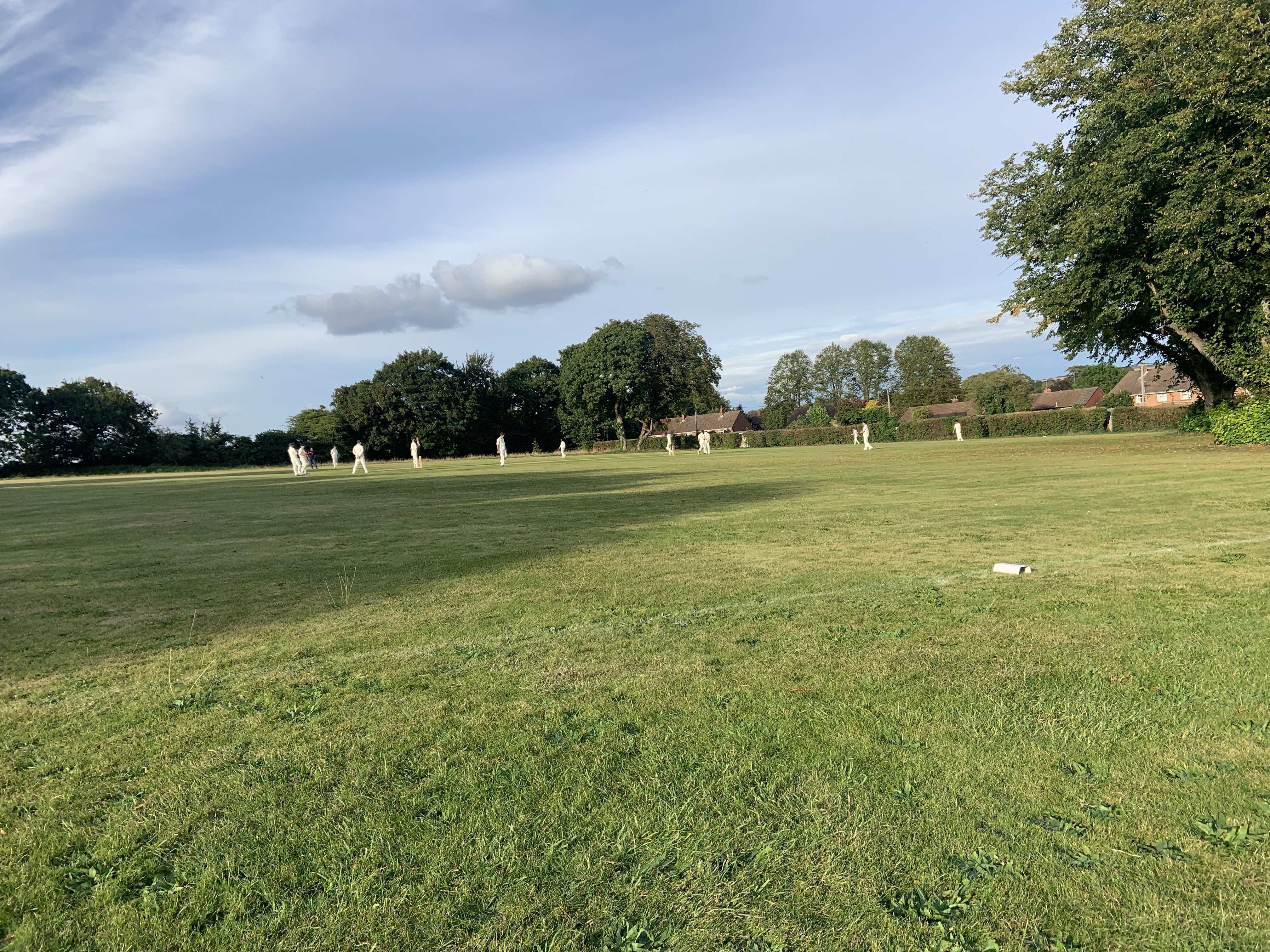 After a morning that threatened patchy showers, the weather cleared perfectly into a warm and largely sunny afternoon for our last match of the season – a trip to the uniquely sloping, arboreally-dressed Droxford ground.