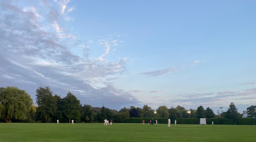 Our return fixture against the travelling Milbury’s was played under a sparkling scudding sky on lush deep green sward – proof of the amount of rain August had brought. We batted first, having lost the toss but with confidence founded on the collective batting firepower assembled. As always, our opponents bowled with discipline and penetration – leavened as they were by a number of talented colts. On a slow but largely true wicket we set a competitive 129 for 8. The most notable contributions being from Dave (25 not out) and Rishi (32 not out) – the former lacing power with elegance, the later batting with explosive athleticism. Skip (19) and Tom T (14) also broke double figures. When Milburys started their reply, they clearly meant business and scored quickly – as they needed to. But this wasn’t to last and with disciplined bowling from Tom T (1-17 – youthfully game), Stu (1-8 – guile born of experience) and Rishi (1-22 – quick and full) the run rate dropped well below that required by mid innings. Farmer Chris, Paddy and Skip added spice to our bowling mix. In the end, although we only took 3 wickets, it was a comfortable and impressive Racqueteers win, against worthy opponents with many talented players – as they finished 26 runs short. So overall the honours were even for 2023 season: Racqueteers 1 – Milbury’s 1.