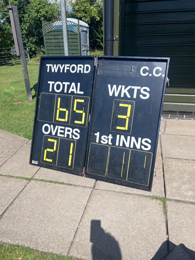 A bright start against some wayward bowling was cut short when Leo was trapped on the crease and Alex, caught in two minds, chipped a low full toss back to the bowler.