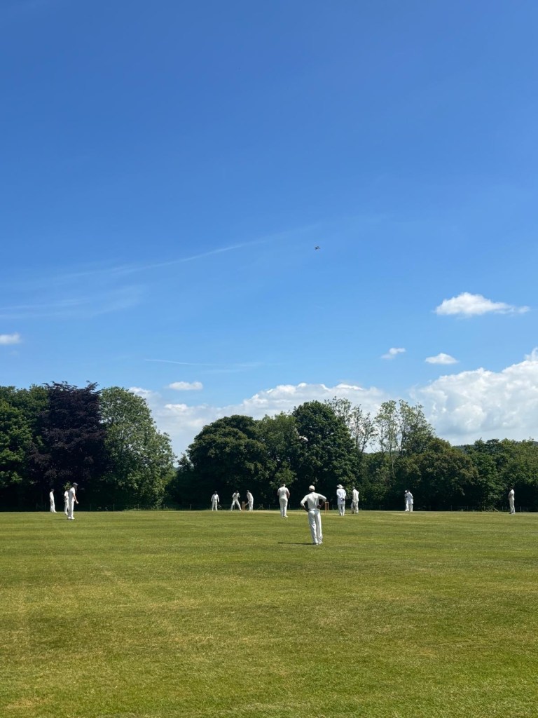 West Meon in May is a wonderful thing. ‘The unresting castles’, as Philip Larkin put it – talking about the trees, you understand – ‘thresh / In fullgrown thickness’. They’re full of birds, too. Rooks cawing and scuffling, greenfinches wheezing, and chiffchaffs chiffing and chaffing away with near-maddening persistence. As the Racqueteers took to the field, a trio of red kites were riding the thermals overhead; later, a lone egret drifted by like a small ghost. (I am able to name these species with authority as our team has a resident birder. If OC didn’t stand for Outstanding Cricketer it could as well be Ornithologist-in-Chief.)