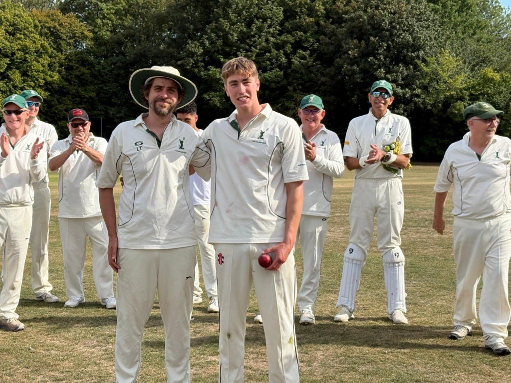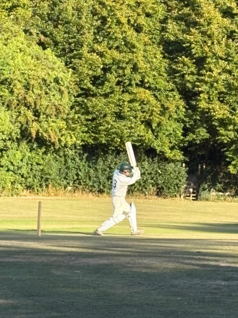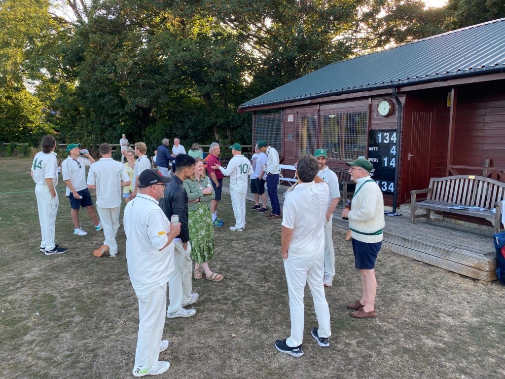 Now cricket is never about solo performances. Except sometimes when it is: and this was a match in which one of our bowlers took five wickets and another four, and one of our batsmen scored more than half of our runs, cruising past his half-century and steering us to a comfortable and particularly satisfying victory. Step forward Tom “Ted” Talks, Leo “the Pope” and, at the crease, Mike the Skipper. And let it not be forgotten – why are wicketkeepers so often neglected? – that G took two catches behind the stumps.