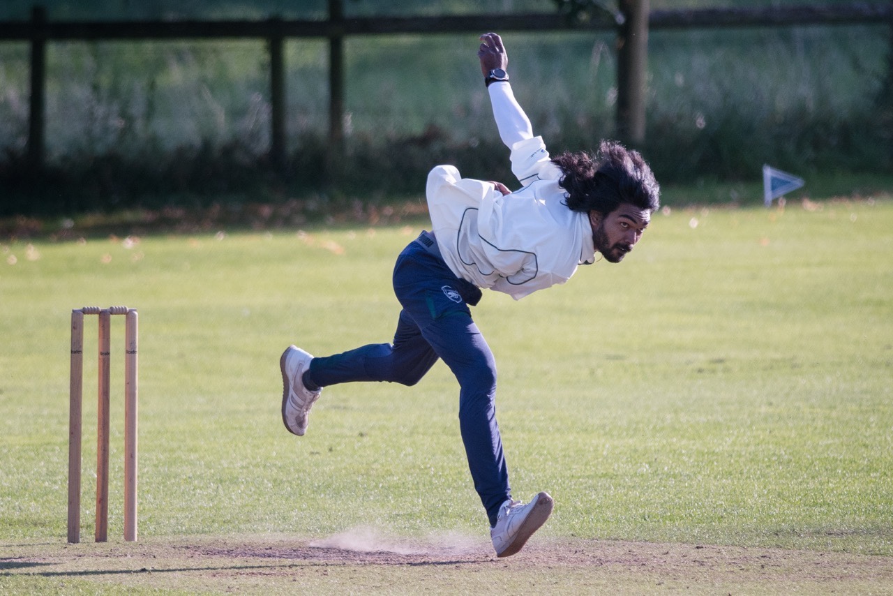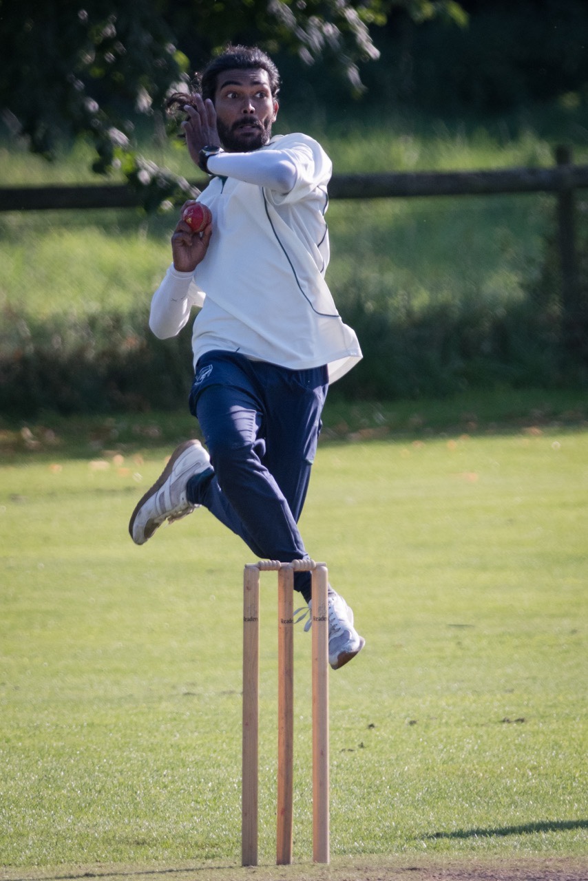 Rishi and Angus opened the bowling for us, with a good exhibition of fast bowling. The first four overs were cat and mouse and then Rishi exploded into action, taking two wickets in four balls, both bowled. We looked good at this stage, but St Cross’ number two played some good cricket including an enormous six off Rishi. After 10 overs, they were close to the run rate and looking strong. However, Rishi doesn’t take kindly to sixes and he produced a great ball to bowl the number two for 48 in his sixth over. Meanwhile, Angus had been bowling accurately and economically, but without getting any luck on the wicket front. Luke and Jack took over the bowling. Luke bowled well and Jack took an excellent 2 for 12 off three overs – one of them an extravagant dive from Luke, the other an lbw. At this point, St Cross had just reached their 100, with 5 wickets down. Tom took over the bowling and after an erratic first five balls, produced an excellent ball for an lbw. St Cross kept the score ticking over as Tom continued to bowl, with Angus coming back for a second spell. The sixth and seventh wickets fell within an over of each other. First, Angus got the wicket he deserved, with a good catch behind to Gaurav – the umpire didn’t give it, but to his credit the St Cross youngster walked. Angus ended with 1 for 20 off eight. Then Tom took his second wicket, with a very good catch in the slips by Luke. St Cross dug in for the next few overs, scoring some good boundaries. They were 172 for 8 after 29 overs. We were favourites but we did need need to get them out. Guy came on and bowled an erratic over, but did take the ninth wicket with Gaurav being alert to stump the batsman off a wide – of course it was planned that way! Rishi bowled next and needed just two balls to wrap the innings up, bowling their final player and leaving them 81 nuns short at 183 all out. Rishi’s figures were an impressive 4 for 41, all his victims straight bowled.