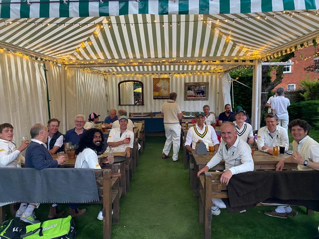 After heavy rains in the previous week, the ground at the sublime Brockwood Park was deemed unplayable for our annual match v The White Hunters; not to be deterred, we rearranged the match as a home fixture and assembled on a sun-kissed evening to play on pitch 2 at North Walls.