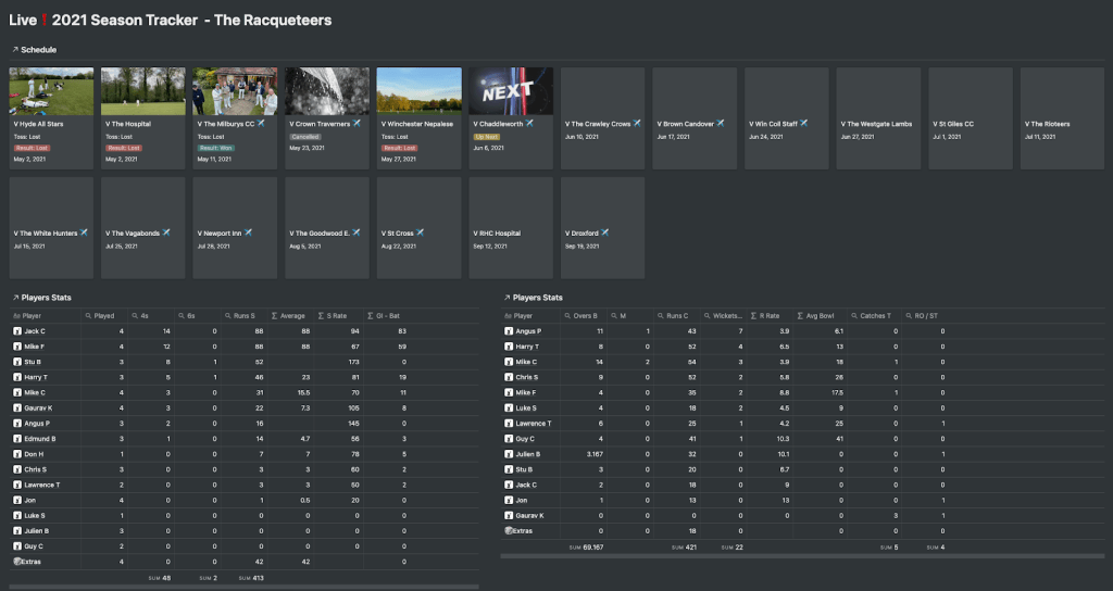However, in the rapidly fading light our middle order struggled to make too much impact on the soft wicket and seven Racqueteers wickets fell before an entertaining & positive unbeaten cameo from Danger (aka Angus) brought us close to the total… but alas we fell 9 runs short in an exciting climax at nearly 9pm!