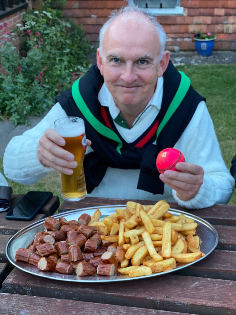 In reply we started solidly enough until both the Prof (5) and the Skipper (10) fell to good catches taken in the gully. The middle order rather fell away, as we pursued the total in our allotted 18 overs, though hope remained while The Bard was at the crease scoring a well-struck positive 26 (retired). G played an elegant and watchful innings (11 not out) but sadly we fell short in the fading light by 30 runs, eventually losing 8 wickets. The disappointment of coming second was soon forgotten over a drink and a plate of sausage & chips back at the eponymous pub; we look forward to returning to our triumphant ways on this lovely rural ground next time!
